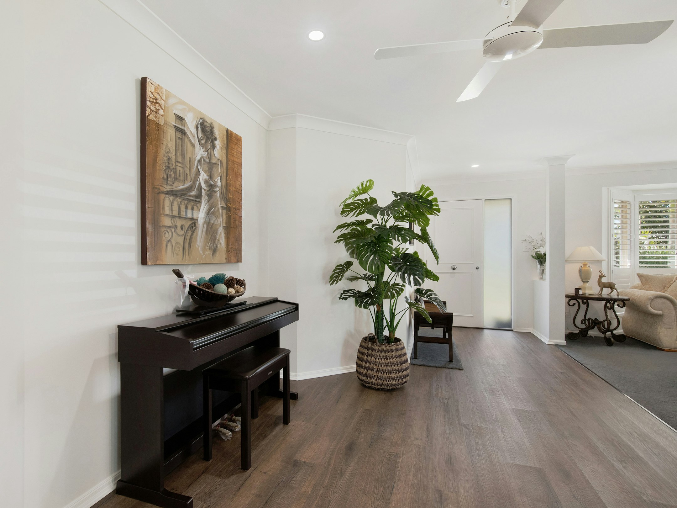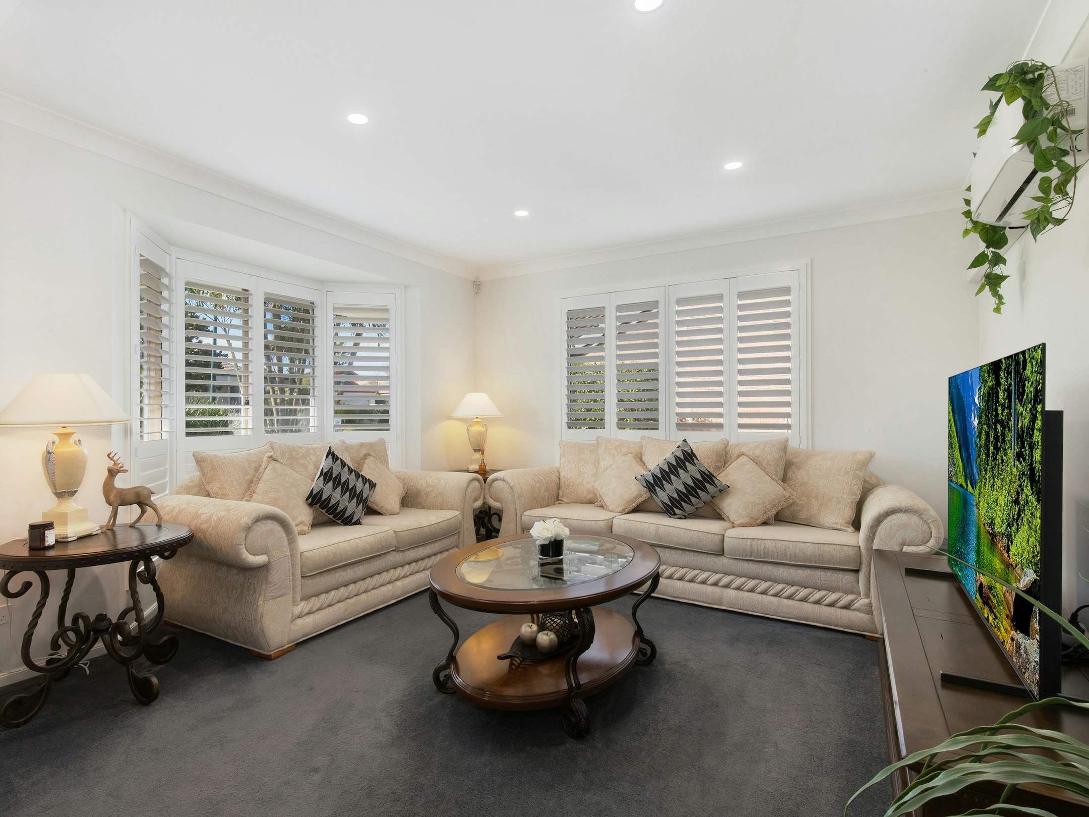 - Front living area with split-system air conditioning, plantation shutters & bay window