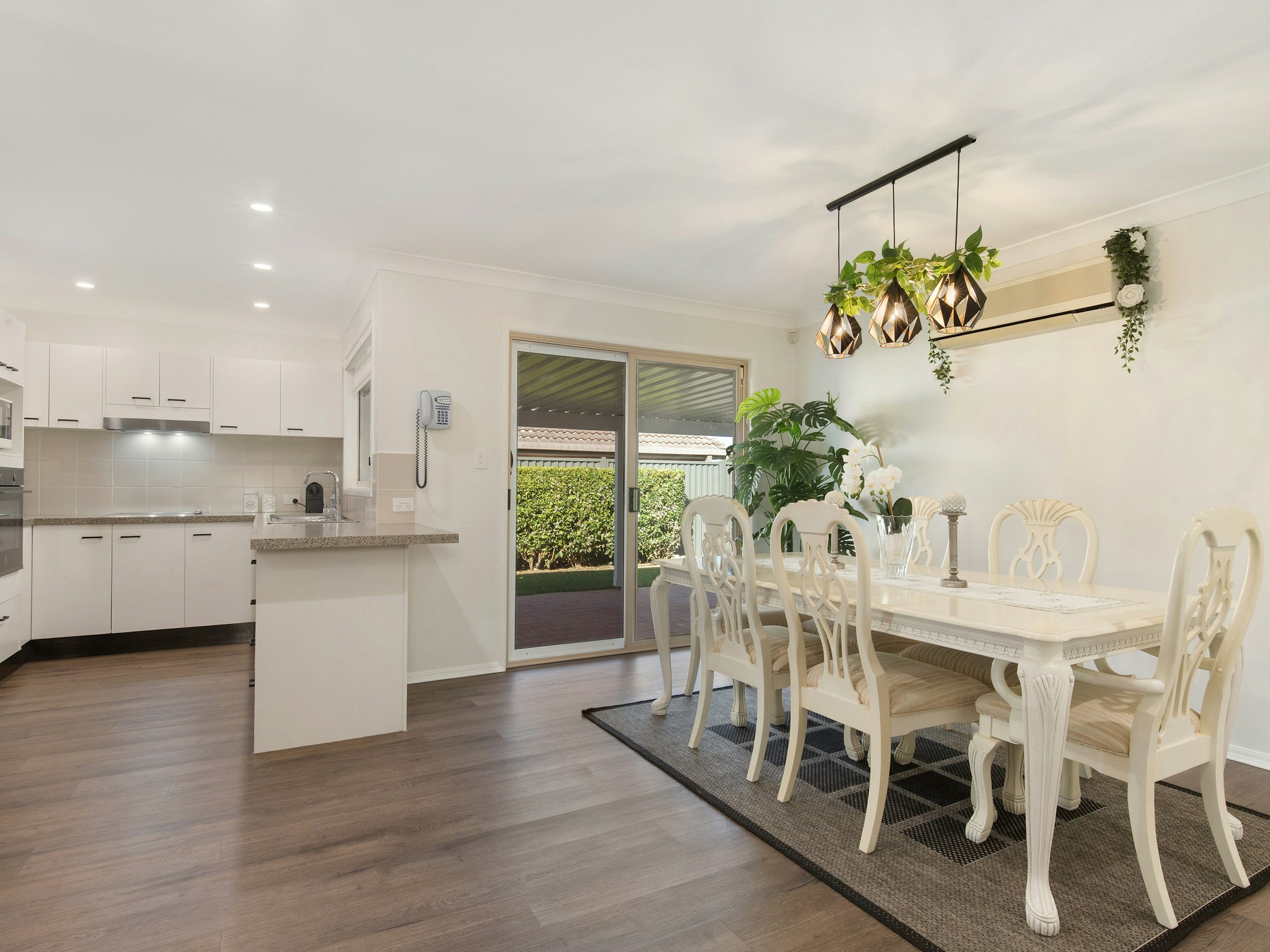 - Dining area with split-system air conditioning, flowing to outdoor entertaining