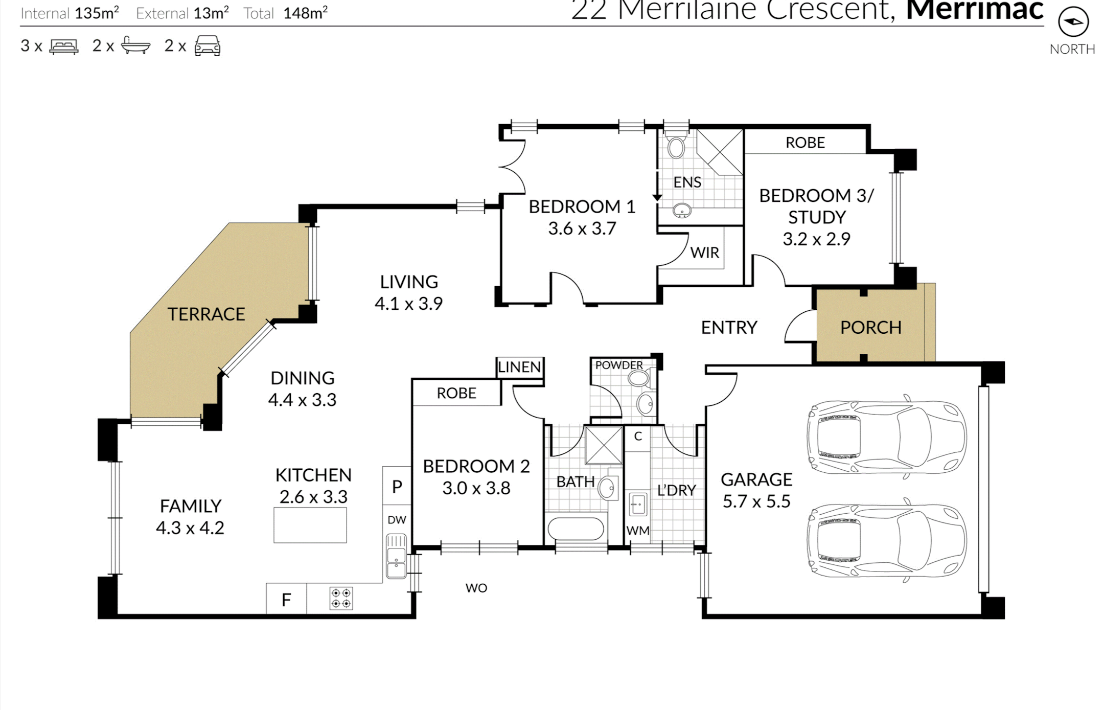 - 3 bedrooms, all with built in robes