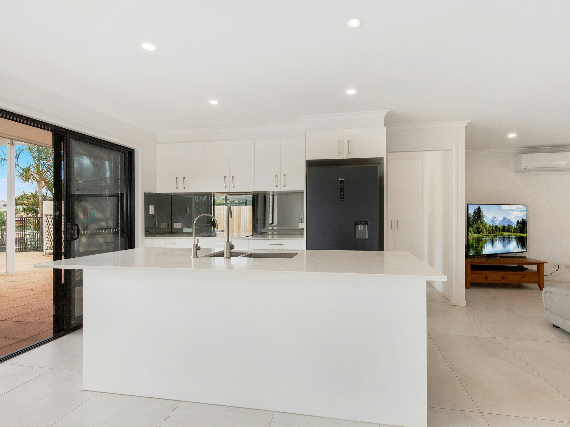 Discover relaxed waterfront living in this beautifully appointed family home, offering comfort, convenience and an unbeatable lifestyle. Perfectly positioned on a north-facing block with its own pontoon, this property combines indoor–outdoor living with premium features throughout.