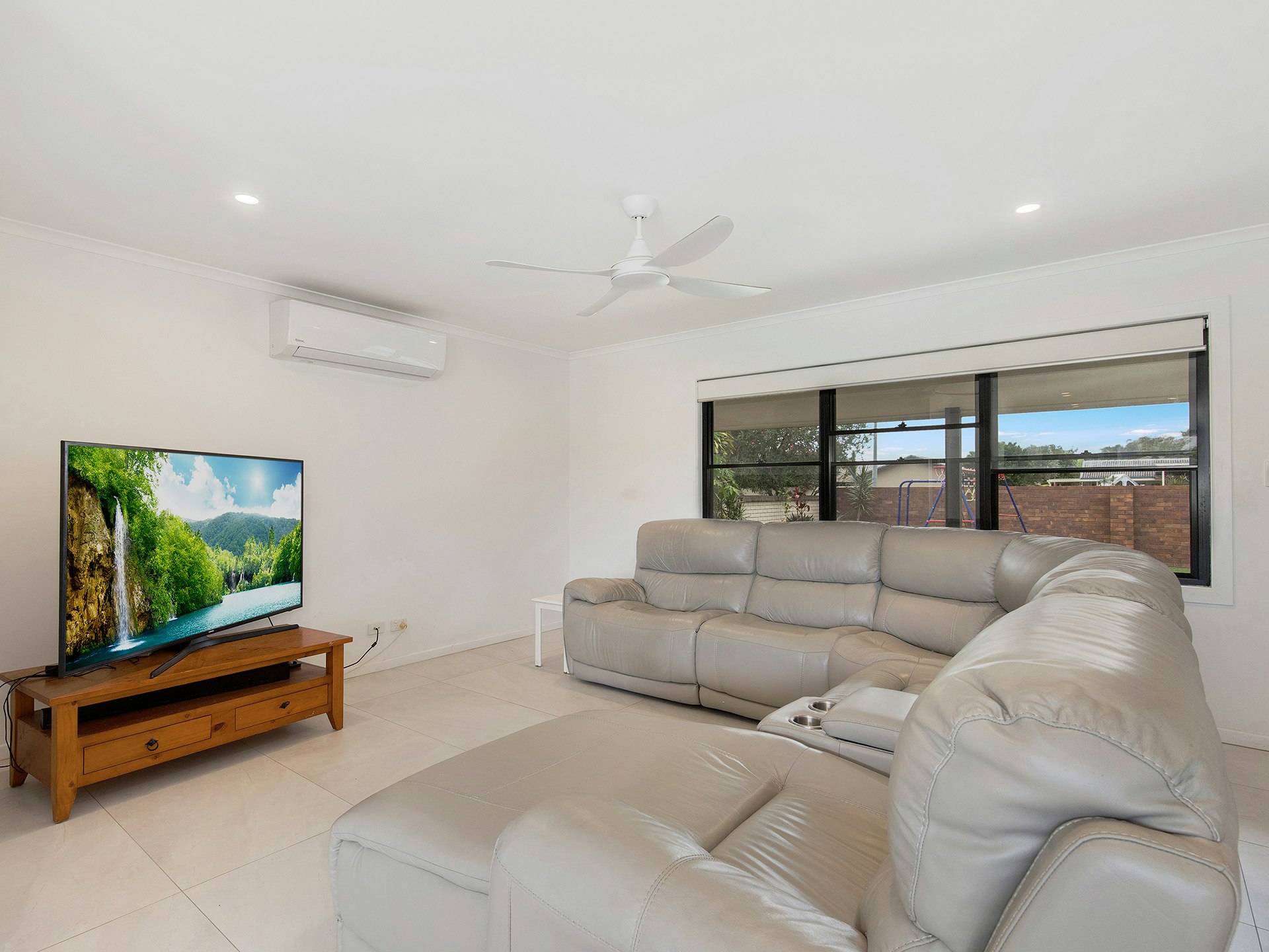 - Light-filled open plan lounge and dining area with air-conditioning and ceiling fan