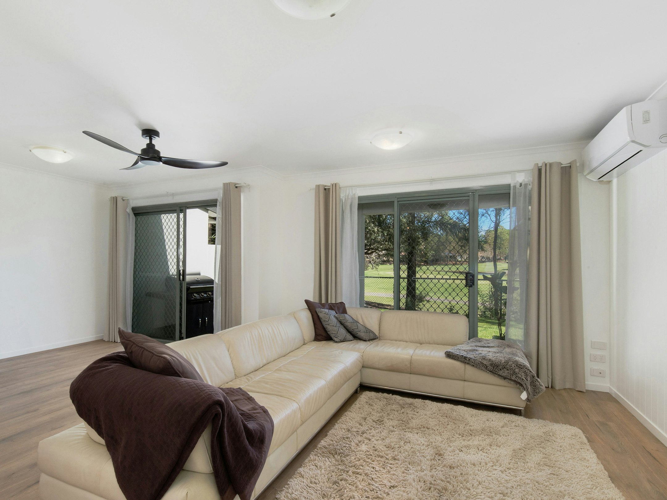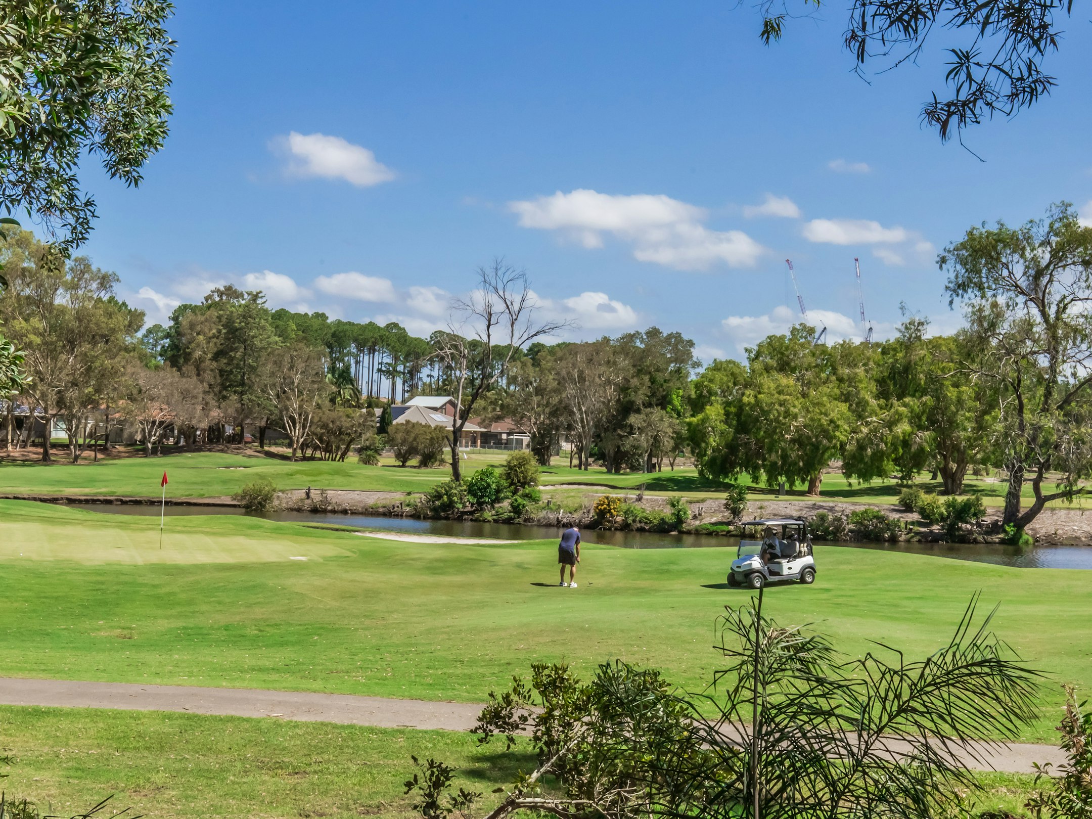 - Two outdoor entertaining areas – private front courtyard and spacious rear patio with freshly laid grass overlooking the golf course